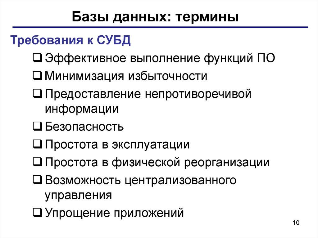 Базы данных: терминыТребования к СУБД