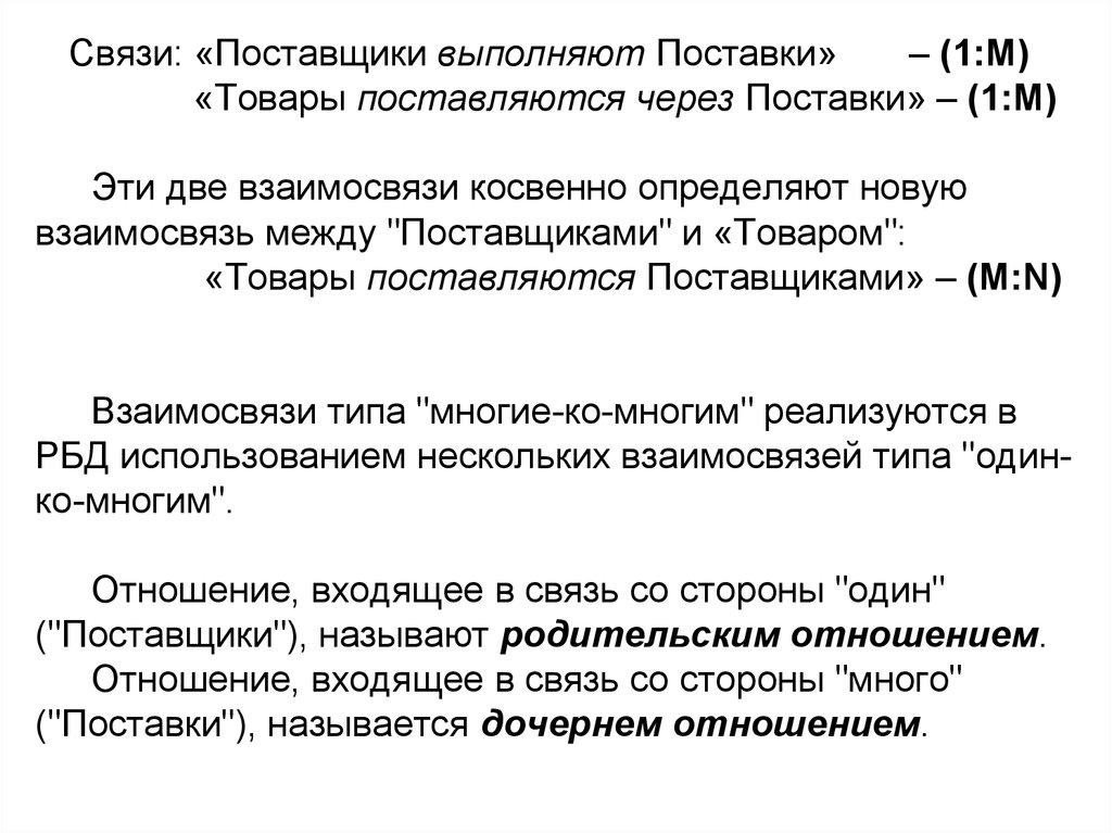 • Если есть кортежи в дочернем отношении,