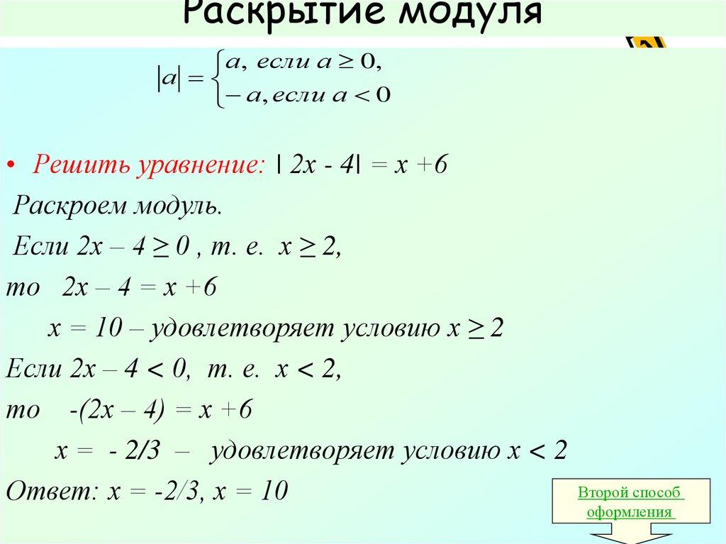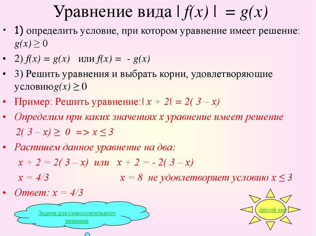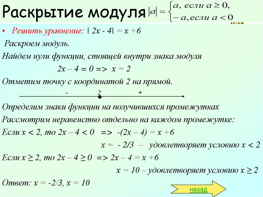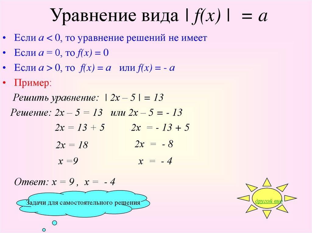 Уравнения и неравенства, содержащие переменную под знаком модуля