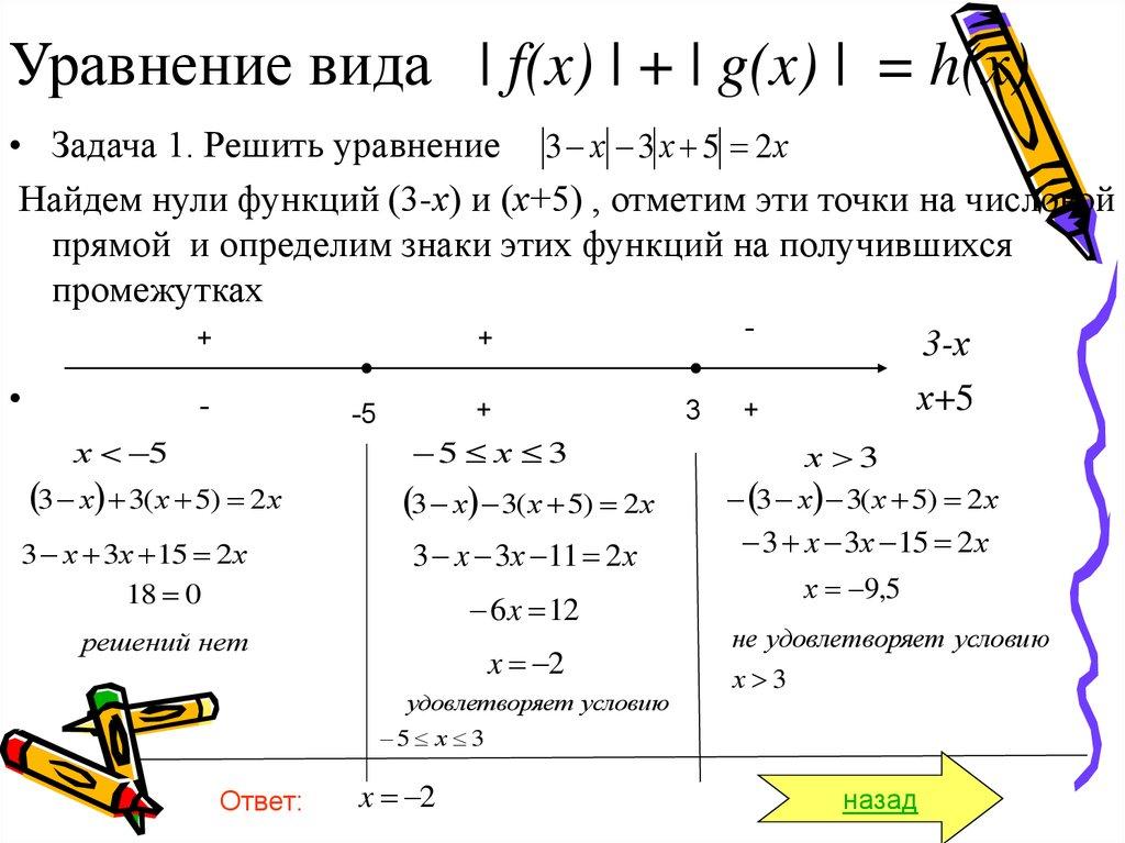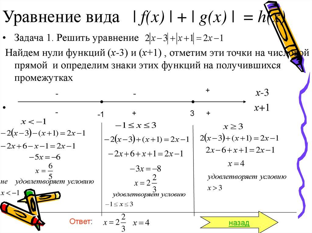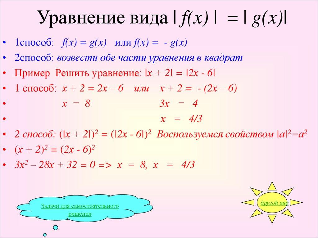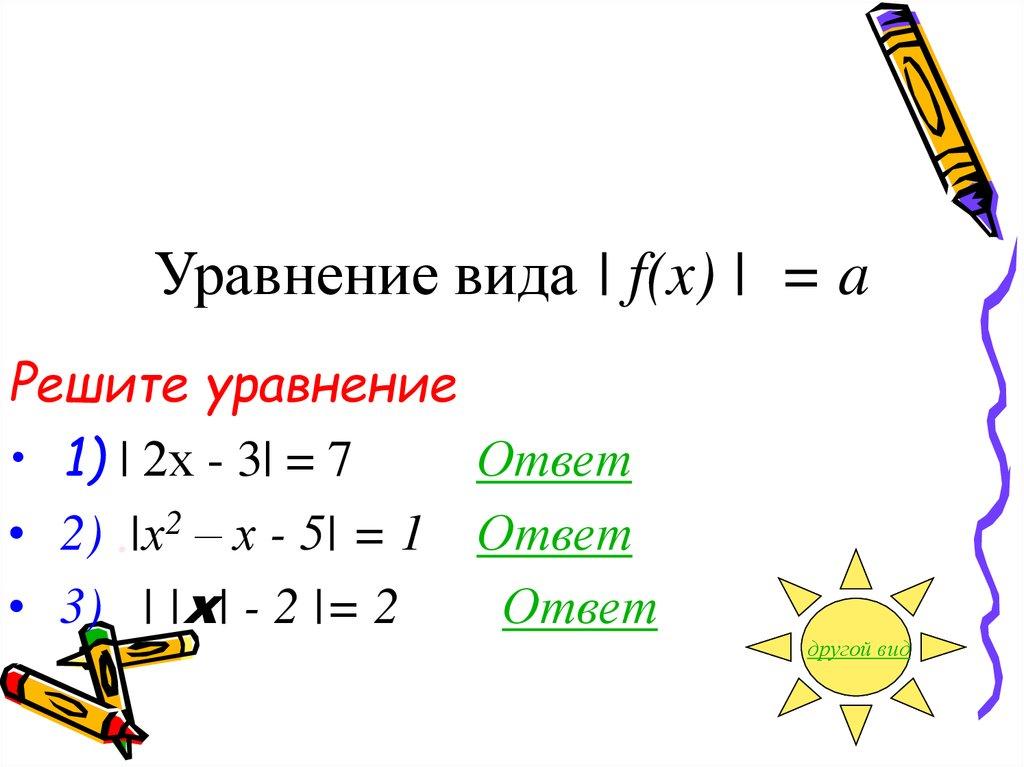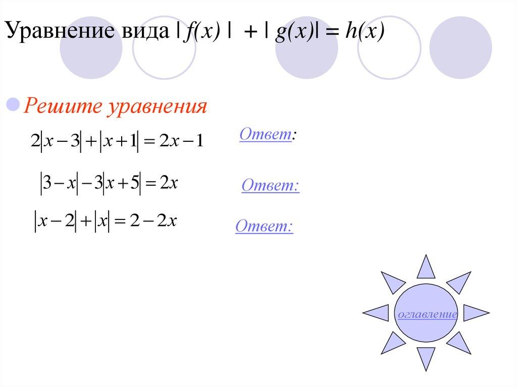 Уравнения и неравенства, содержащие переменную под знаком модуля