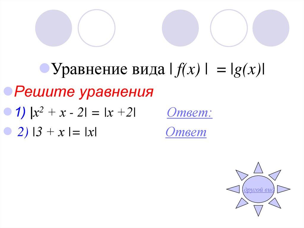 • 2) f(x) = g(x) или f(x) = - g(x)