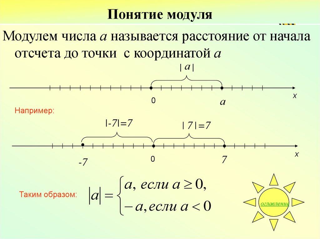 Модулем числа а называется расстояние от началаотсчета до точки с координатой а