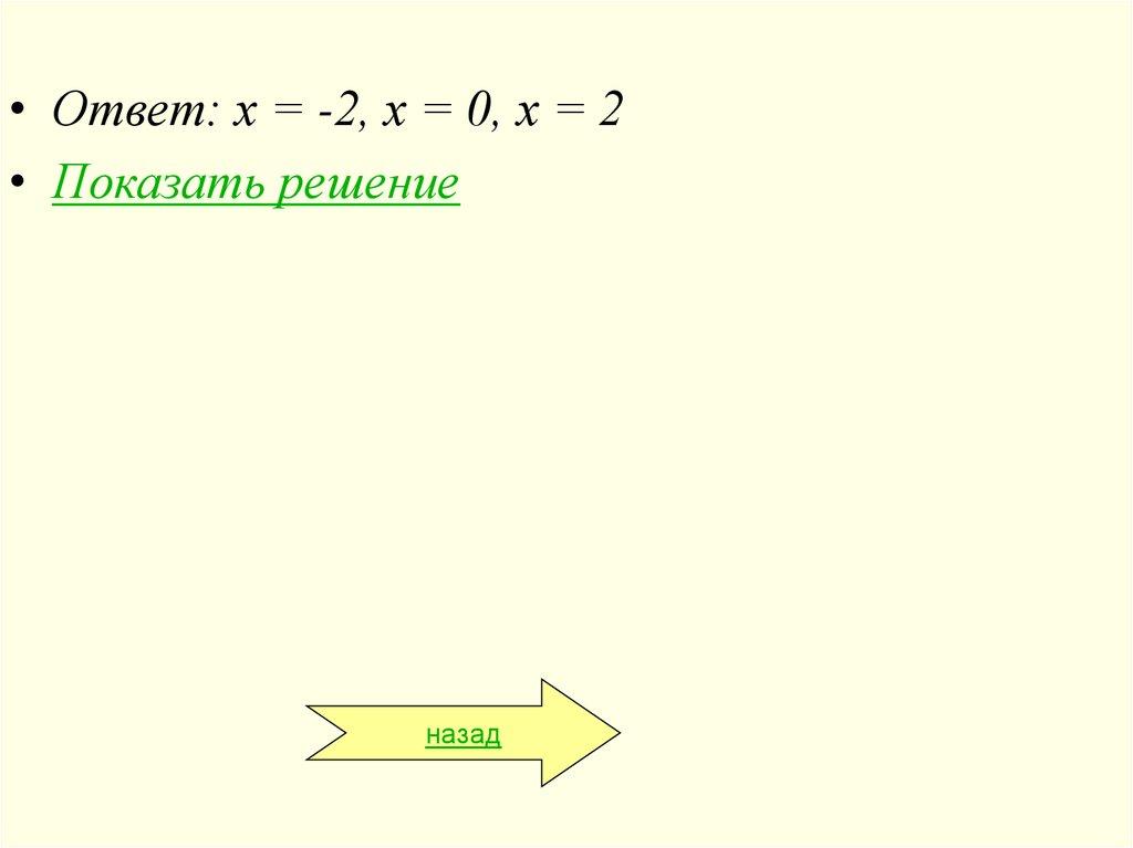 • Ответ: x= 4, x= - 4 , x = 0• Показать решение