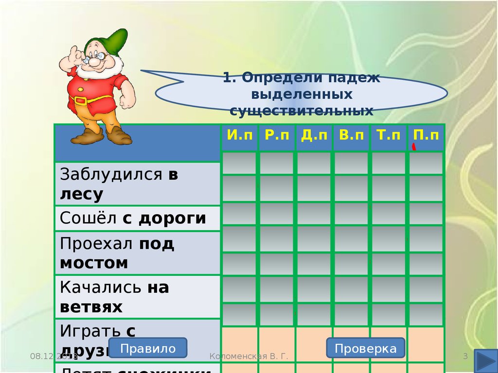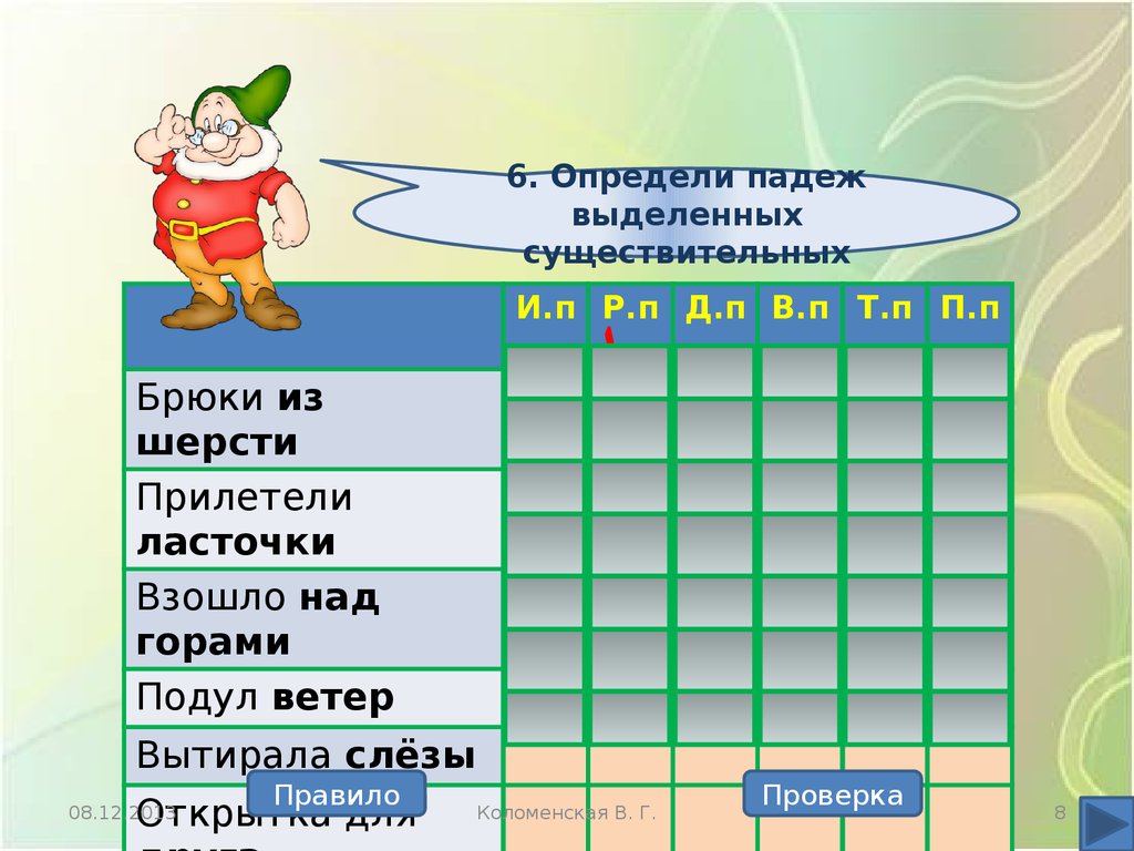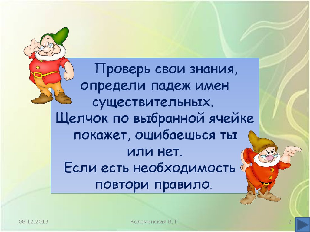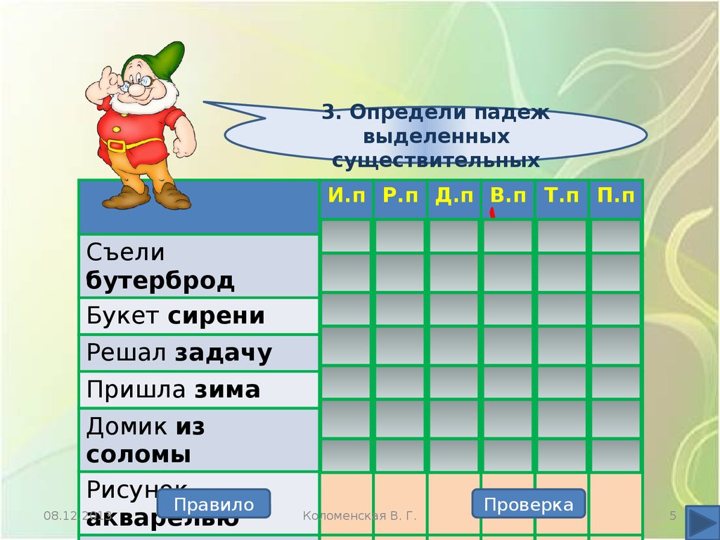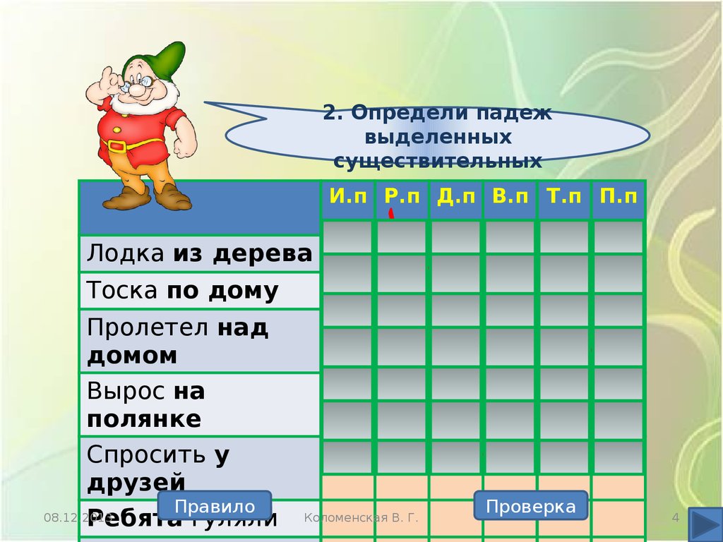 Определение падежей имён существительных. Интерактивный тренажёр
