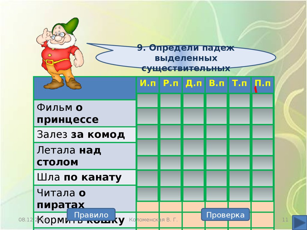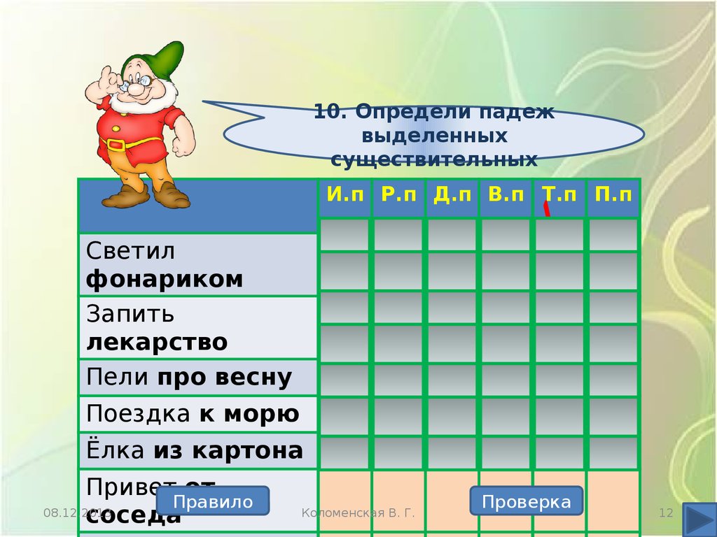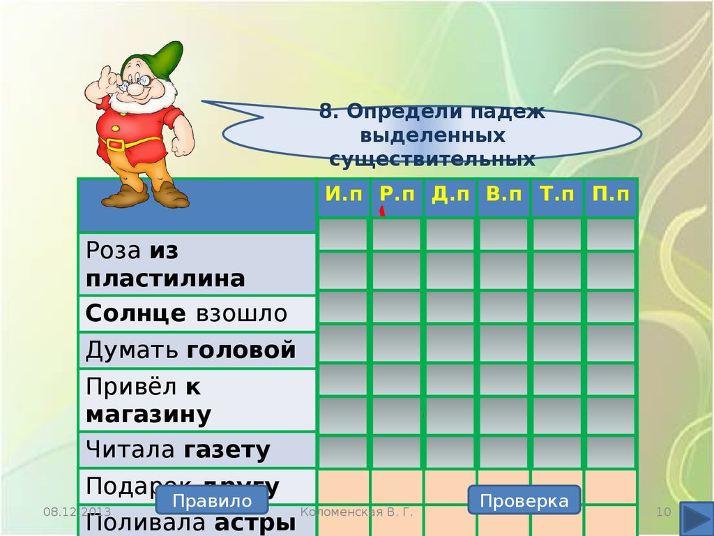 10. Определи падежвыделенных