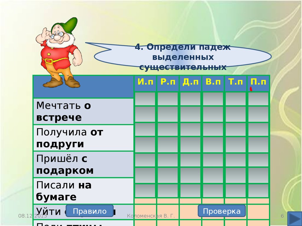 6. Определи падежвыделенных