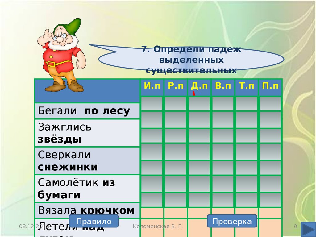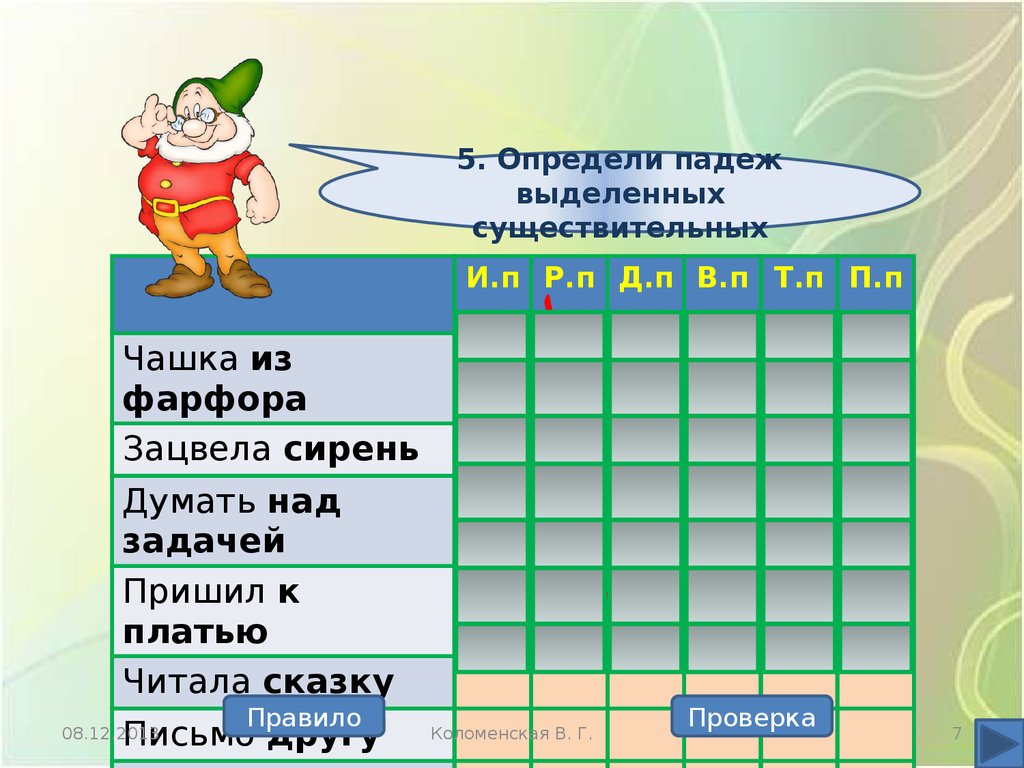7. Определи падежвыделенных