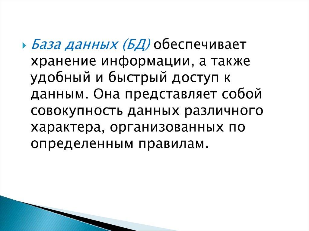 База данных (БД) обеспечиваетхранение информации, а также