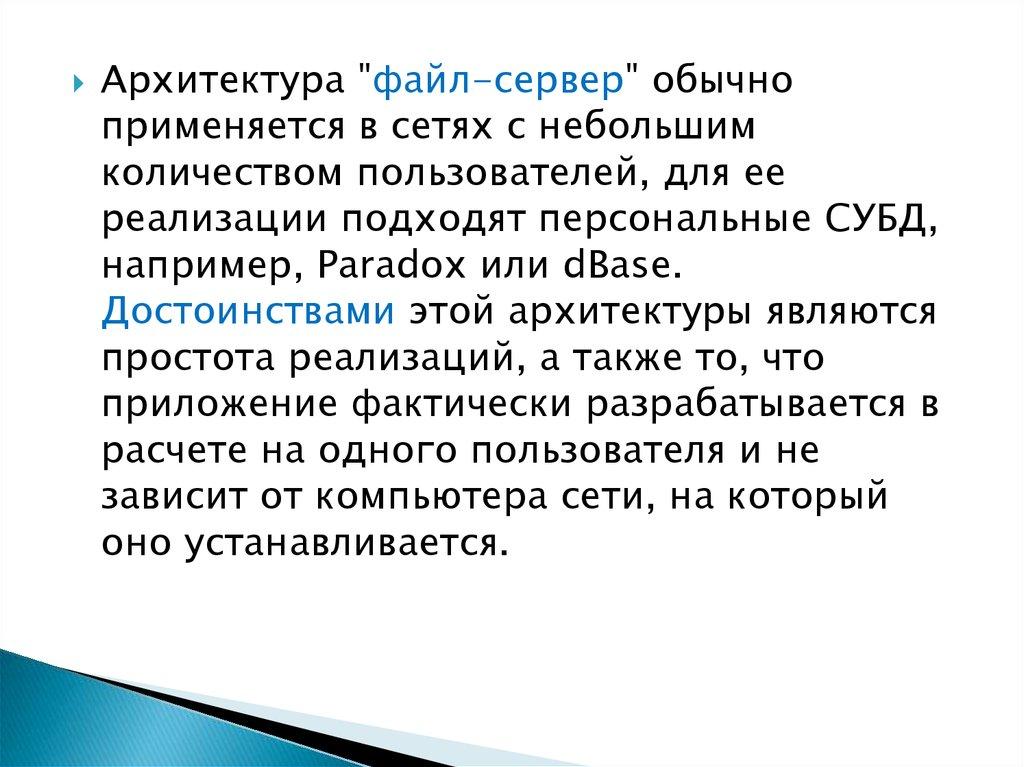 Архитектура "файл-сервер" обычноприменяется в сетях с небольшим