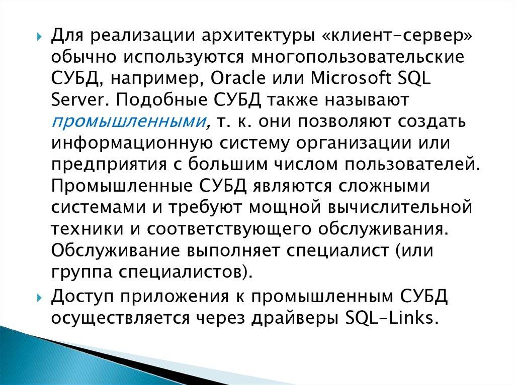 Server. Подобные СУБД также называют