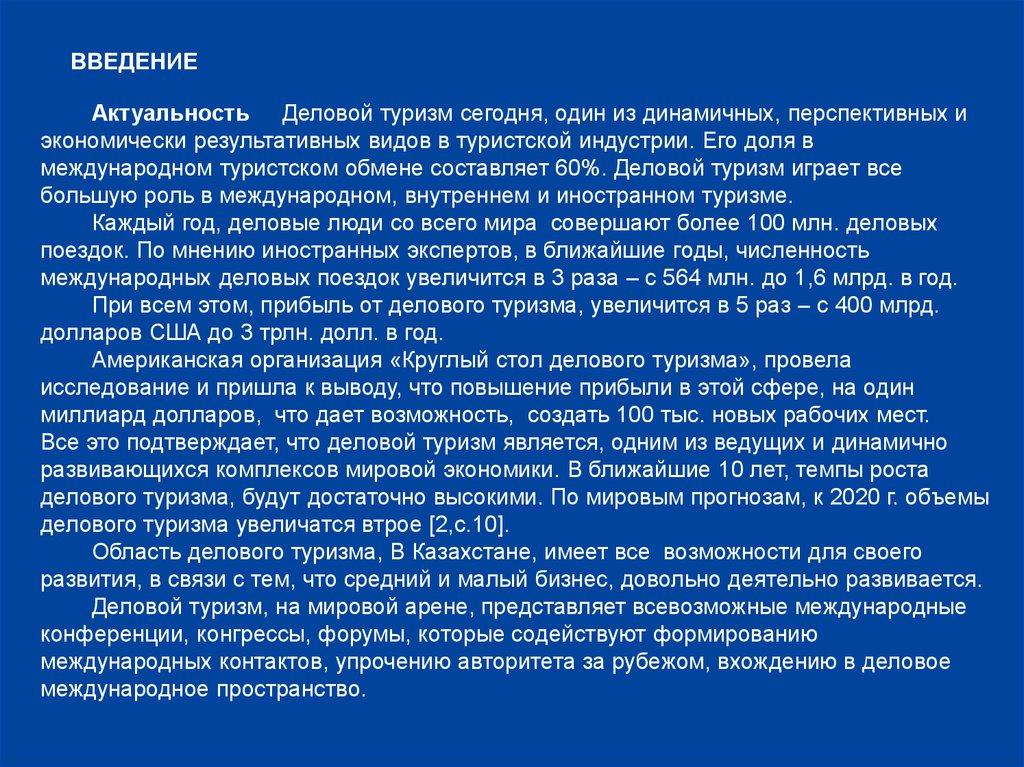 ВВЕДЕНИЕАктуальность Деловой туризм сегодня, один из динамичных, перспективных и