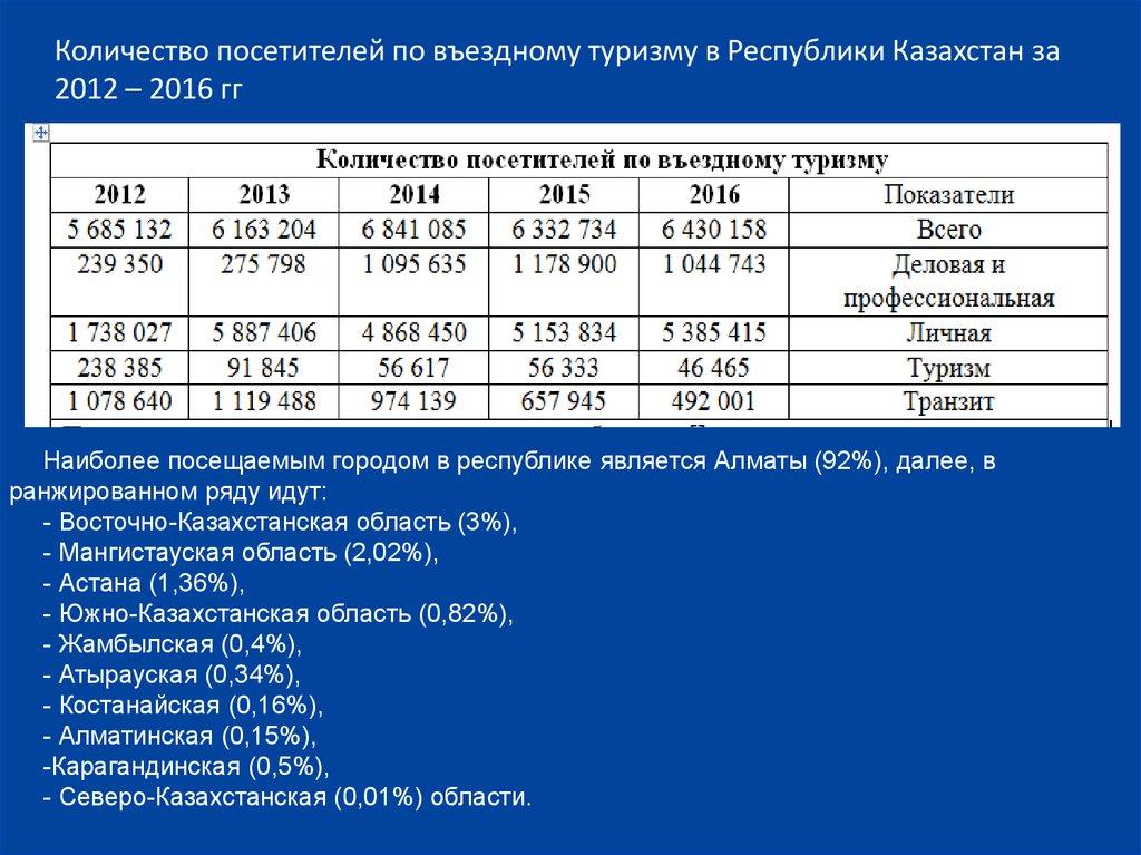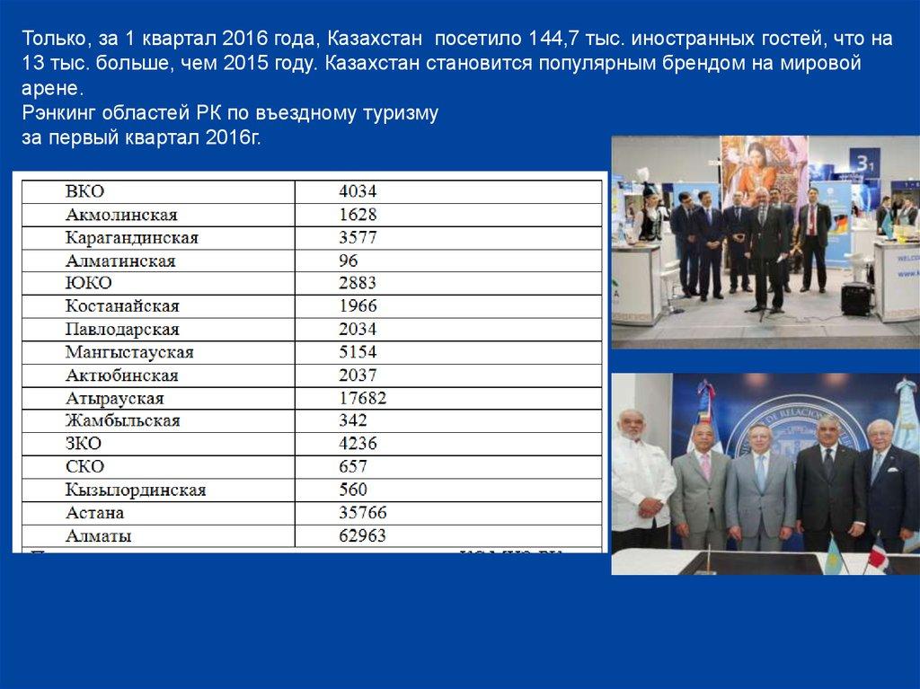 Только, за 1 квартал 2016 года, Казахстан посетило 144,7 тыс. иностранных гостей, что на13 тыс. больше, чем 2015 году. Казахстан становится популярным брендом на мировой