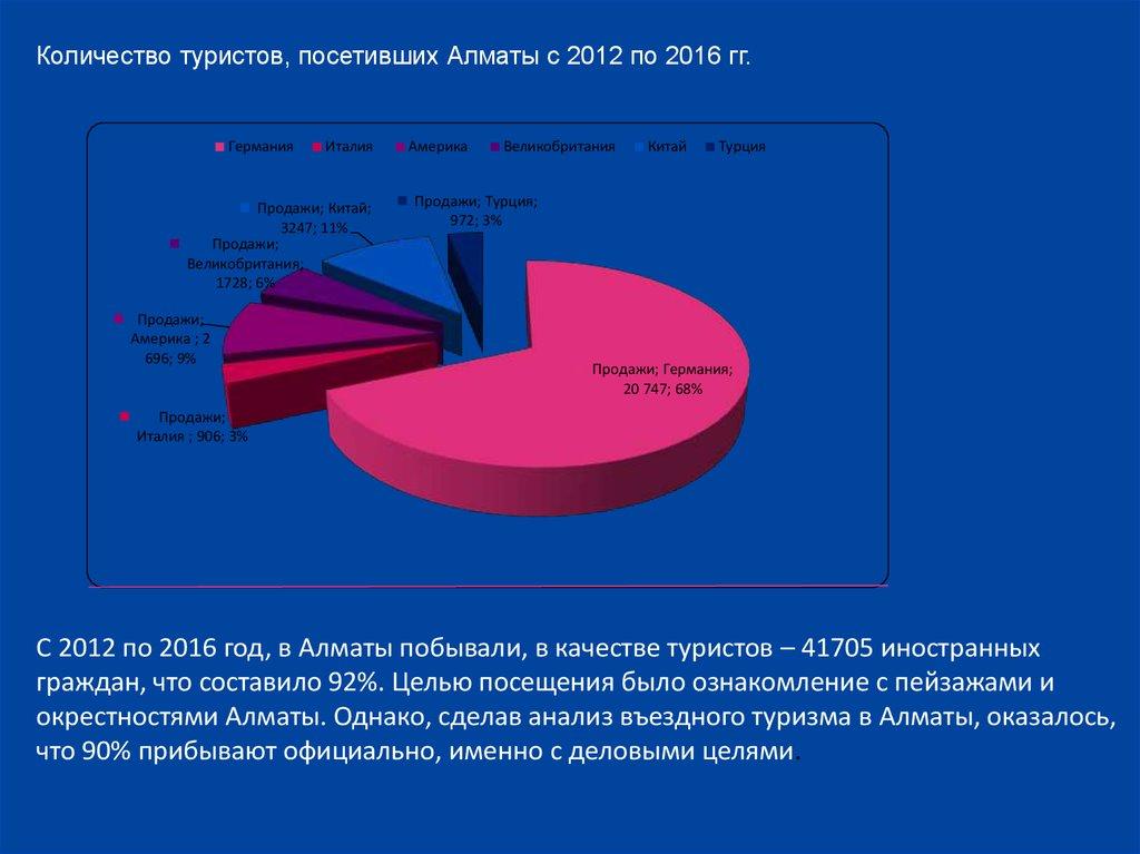 С 2012 по 2016 год, в Алматы побывали, в качестве туристов – 41705 иностранных