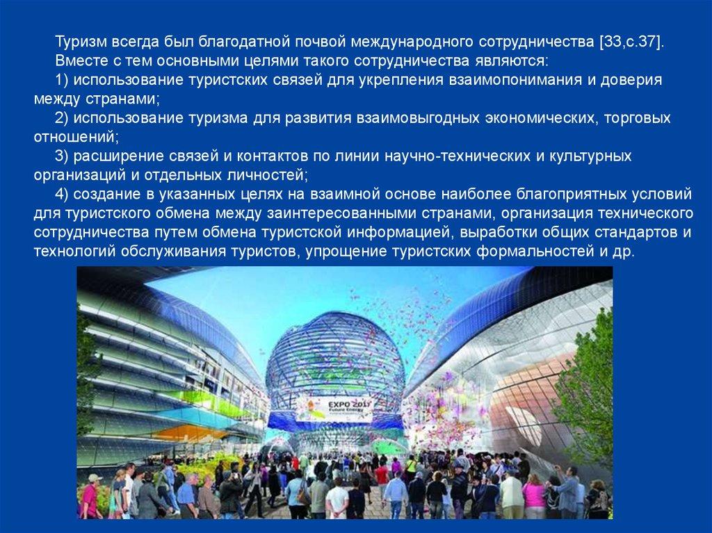 2) использование туризма для развития взаимовыгодных экономических, торговых
