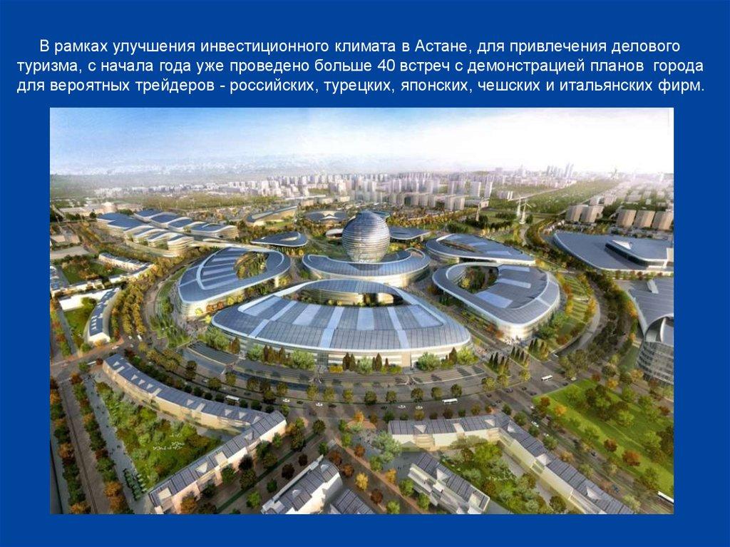В рамках улучшения инвестиционного климата в Астане, для привлечения деловоготуризма, с начала года уже проведено больше 40 встреч с демонстрацией планов города
