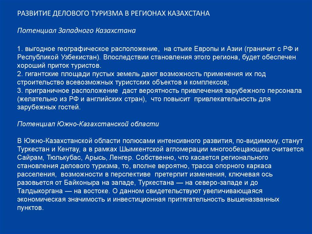 РАЗВИТИЕ ДЕЛОВОГО ТУРИЗМА В РЕГИОНАХ КАЗАХСТАНАПотенциал Западного Казахстана