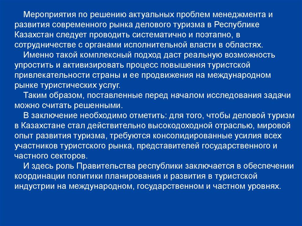 Мероприятия по решению актуальных проблем менеджмента иразвития современного рынка делового туризма в Республике