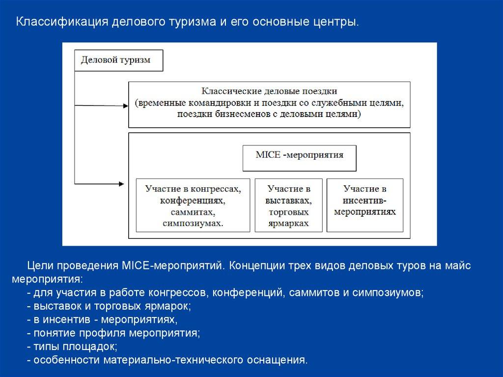 Классификация делового туризма и его основные центры.Цели проведения MICE-мероприятий. Концепции трех видов деловых туров на майс