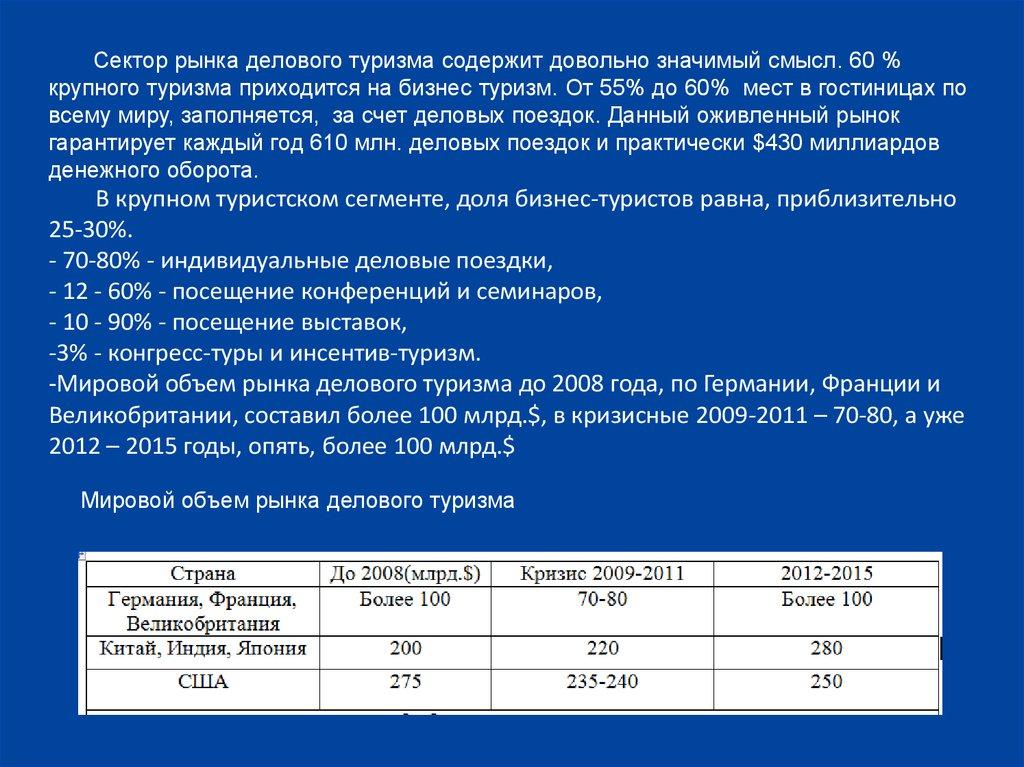 такого понятия, как деловой туризм. Следует, что современный деловой туризм,