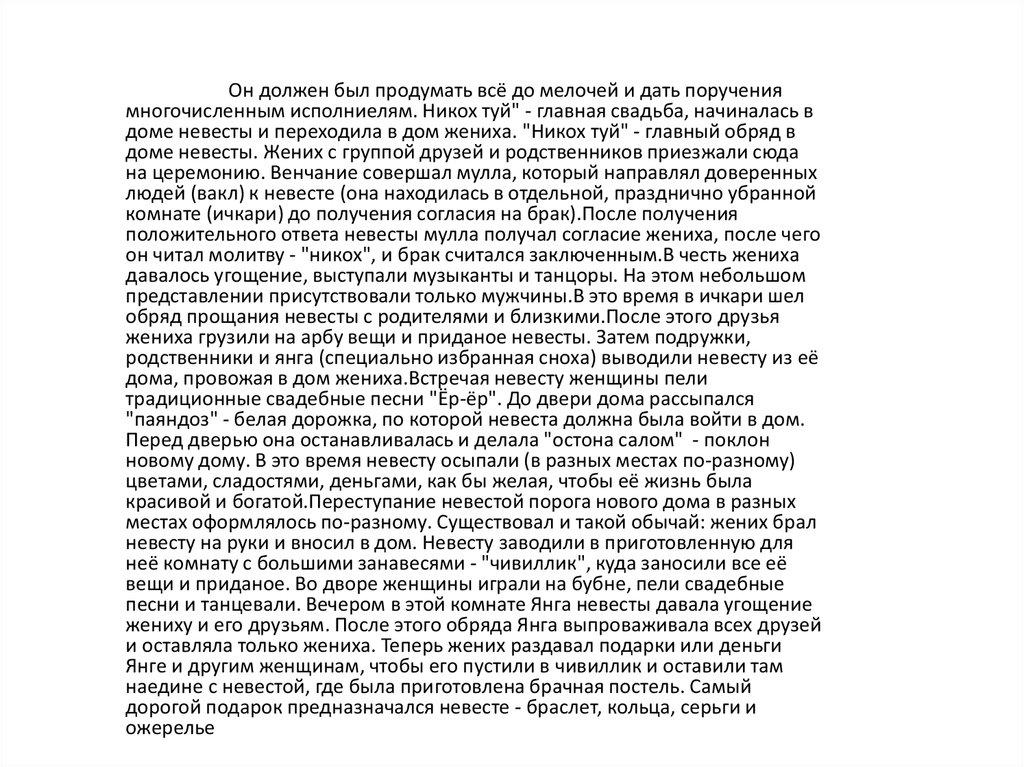 общественности. Дело начиналось с поиска невесты "келин эгалаш". Родители или близкие люди находили