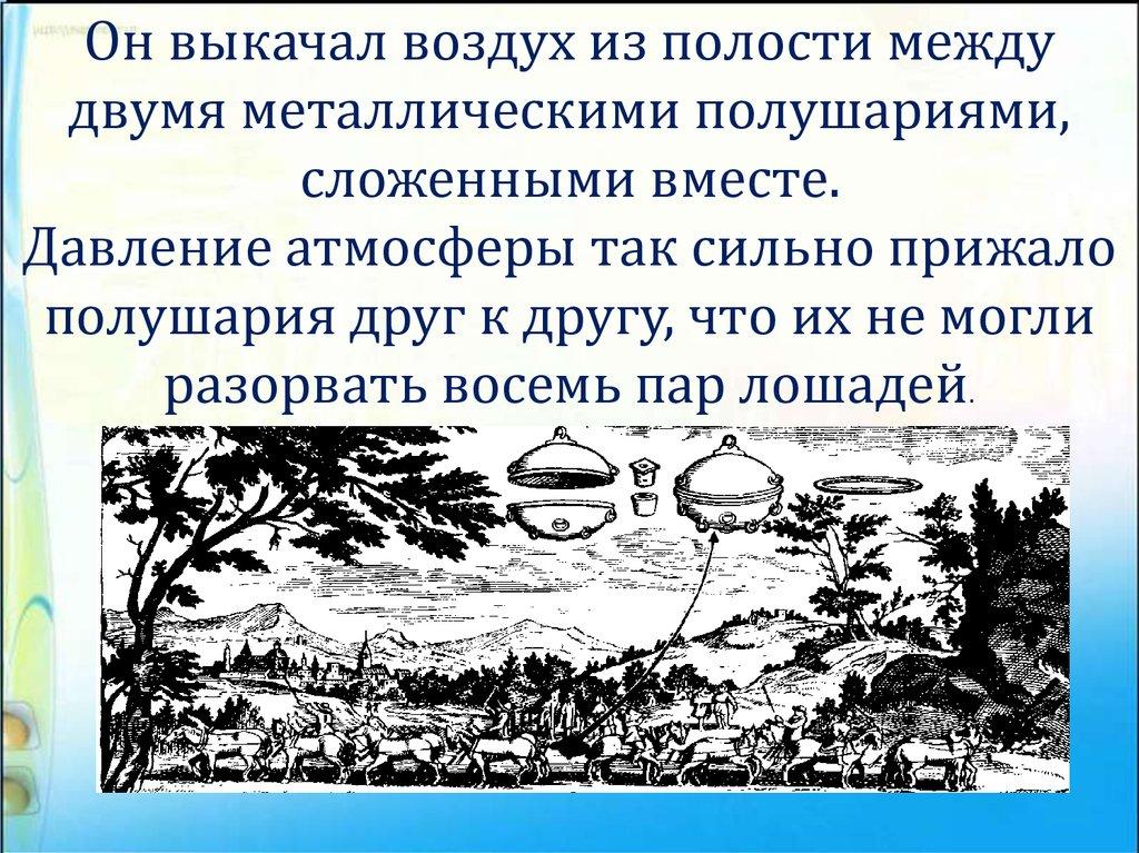 Он выкачал воздух из полости междудвумя металлическими полушариями,