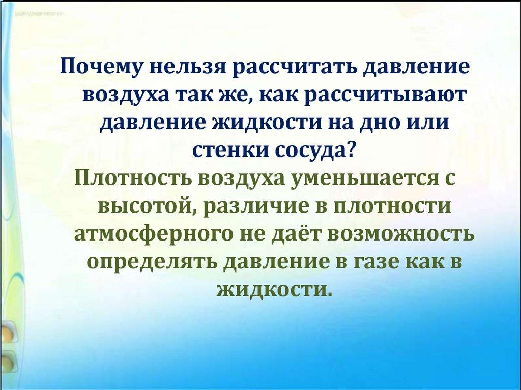 Почему нельзя рассчитать давлениевоздуха так же, как рассчитывают