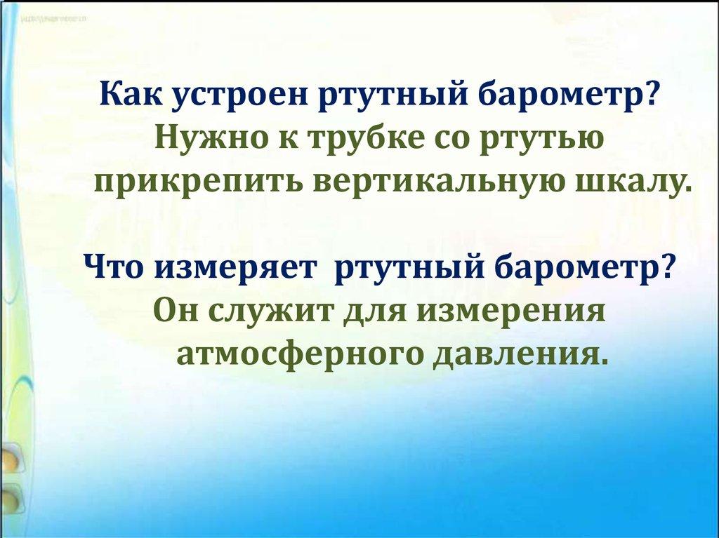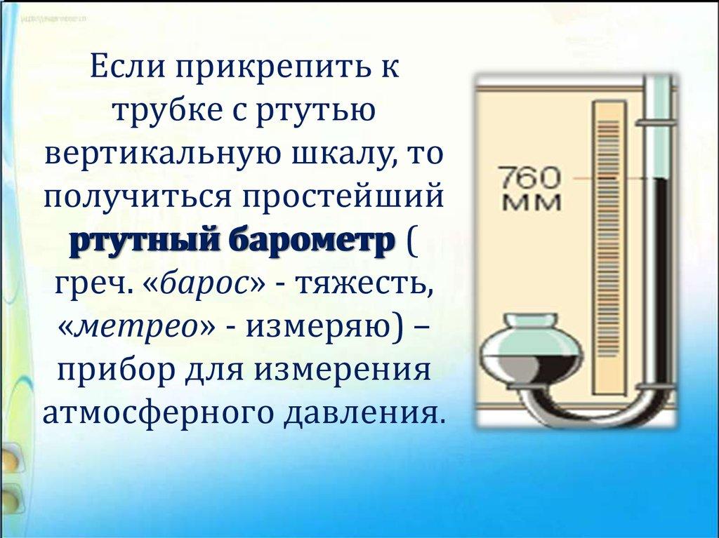 Как устроен ртутный барометр?Нужно к трубке со ртутью