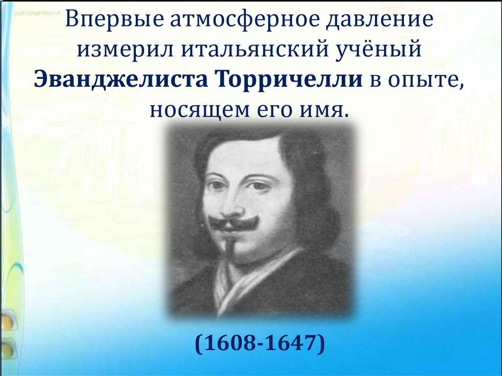Впервые атмосферное давлениеизмерил итальянский учёный
