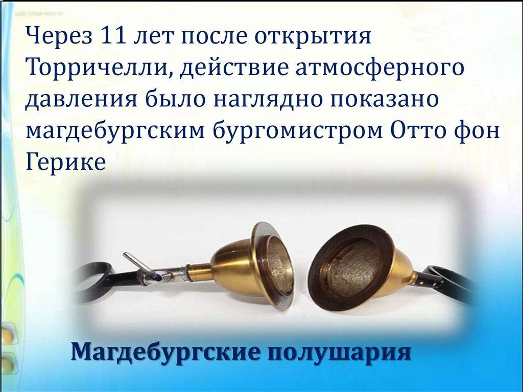 Через 11 лет после открытияТорричелли, действие атмосферного