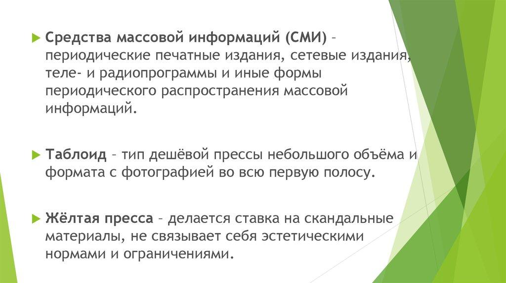 Средства массовой информаций (СМИ) –периодические печатные издания, сетевые издания,