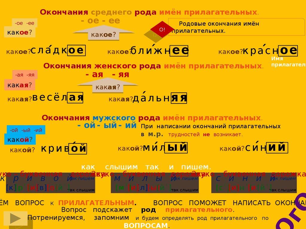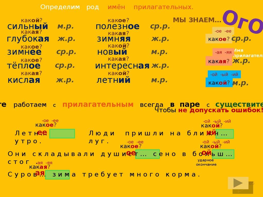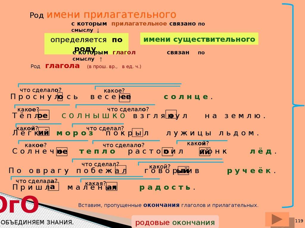 Вставим, пропущенные окончания глаголов и прилагательных.
