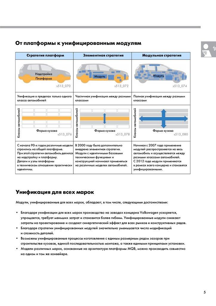 Стратегия модульного построения платформы MQB основана на использовании семейства унифицированных