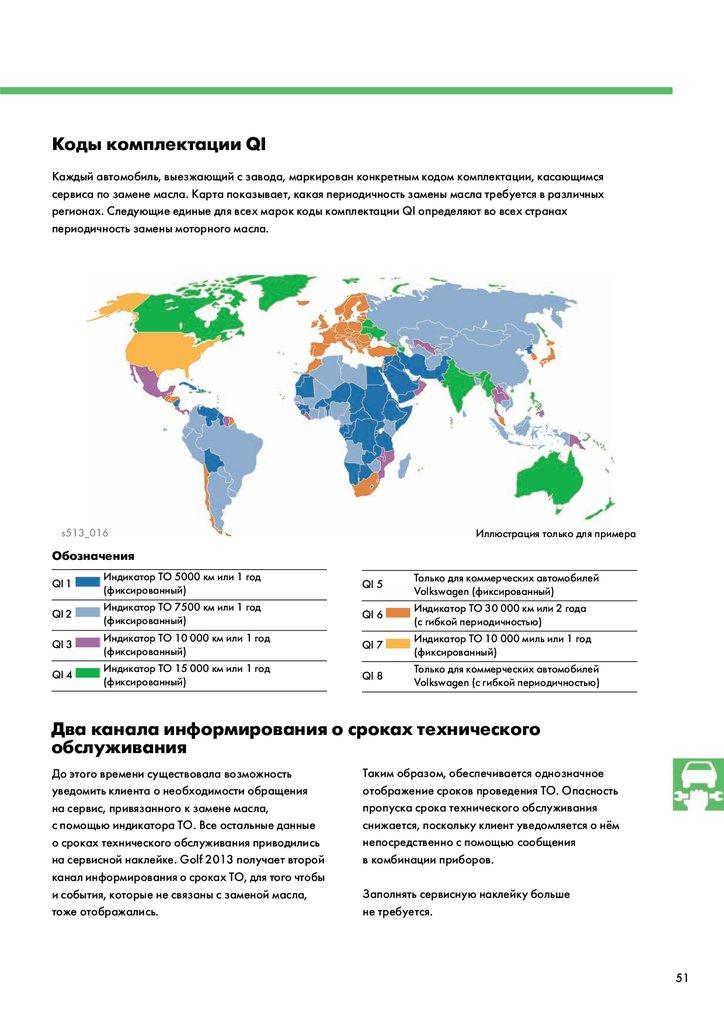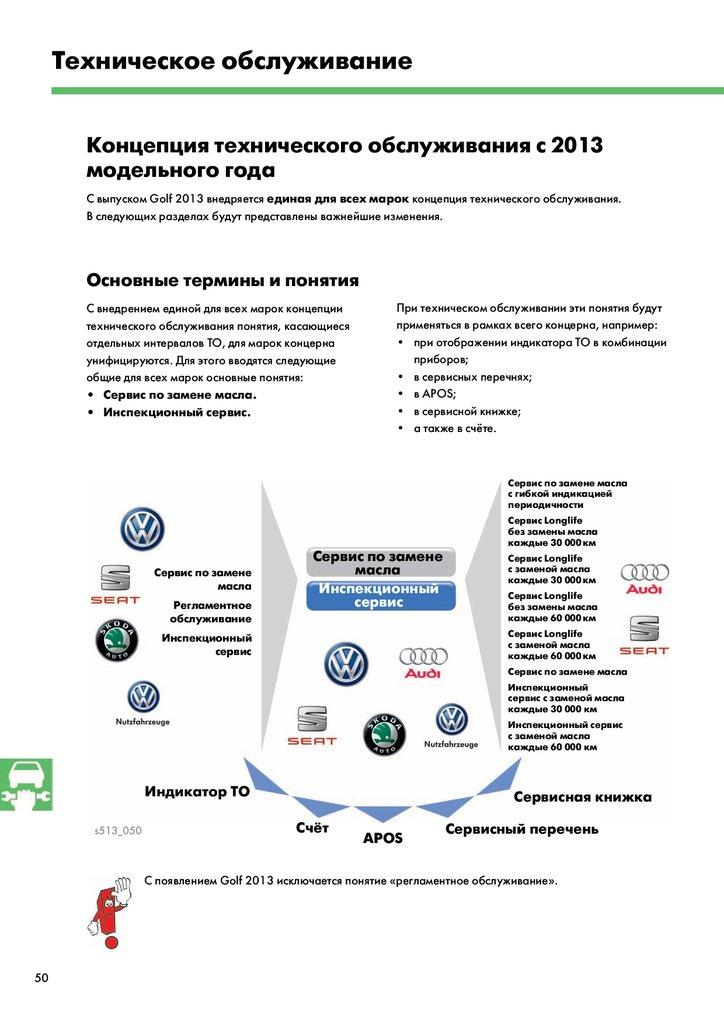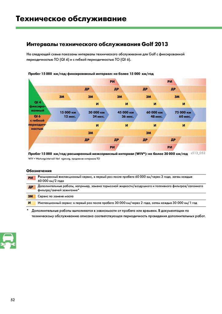 Техническое обслуживаниеИнтервалы технического обслуживания Golf 2013