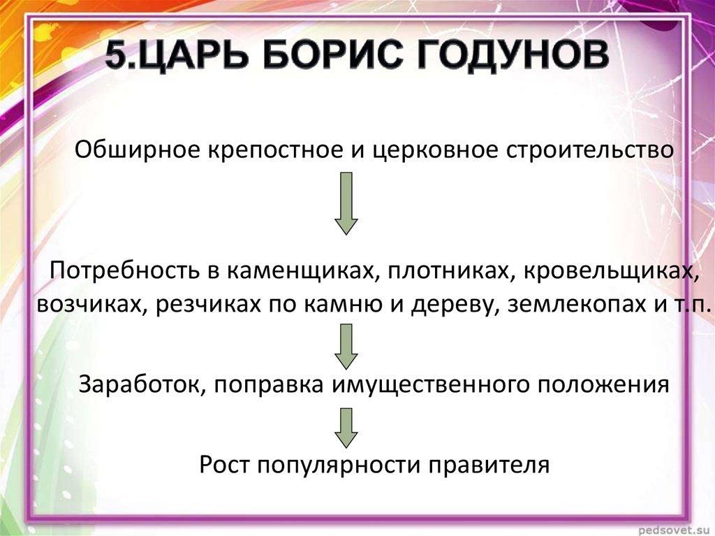 Борис Годунов боялся покушений на свою власть, устранял всехподозрительных для себя бояр. Так, в 1600 г. по ложному