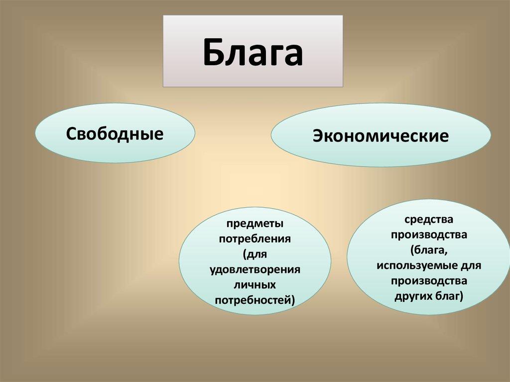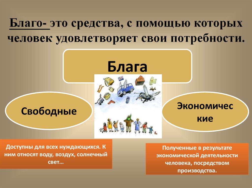 Благо- это средства, с помощью которыхчеловек удовлетворяет свои потребности.