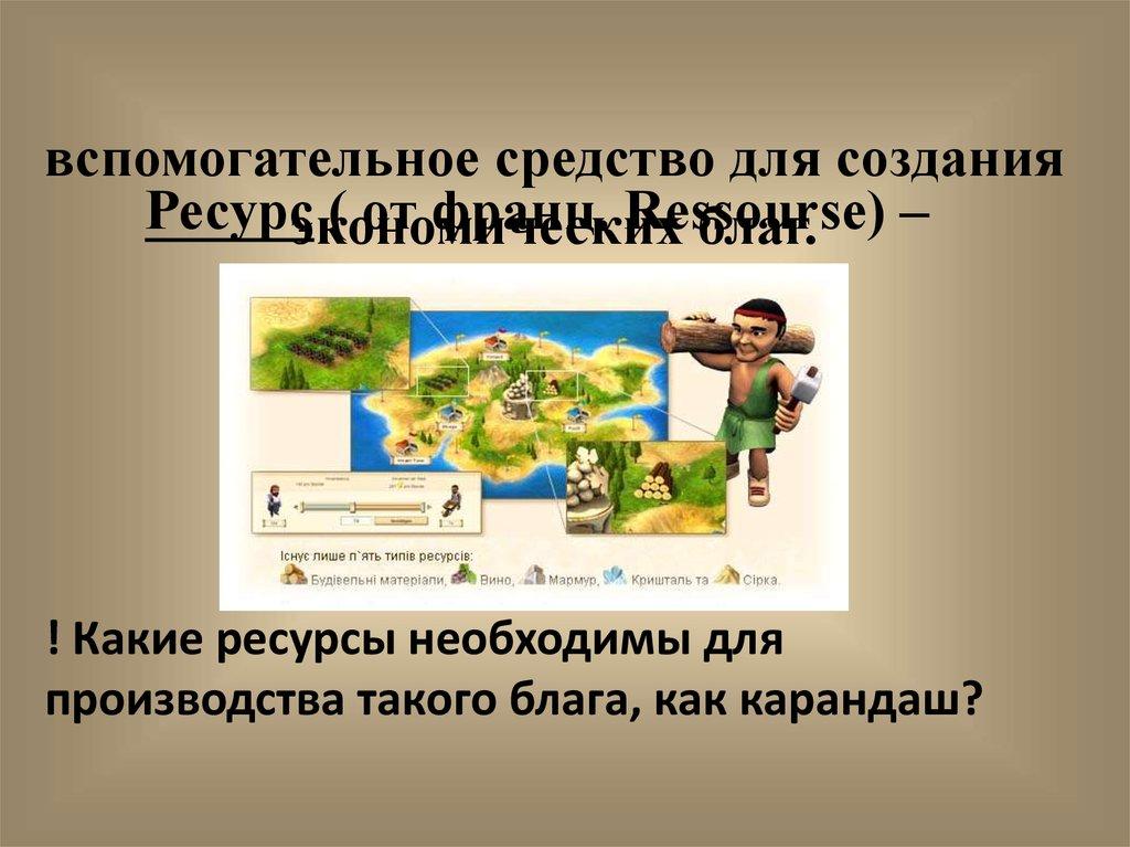 вспомогательное средство для созданияРесурсэкономических