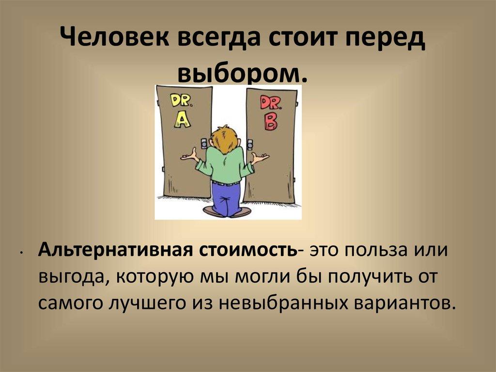 Человек всегда стоит передвыбором.