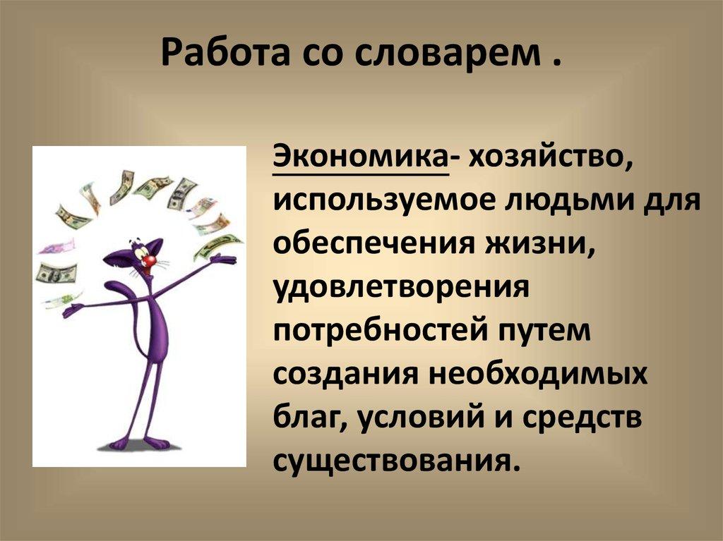 Работа со словарем .Экономика- хозяйство,