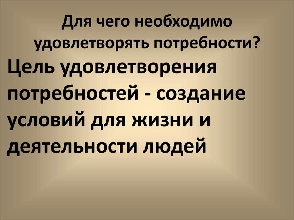 Для чего необходимоудовлетворять потребности?