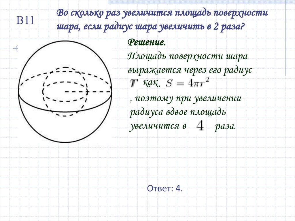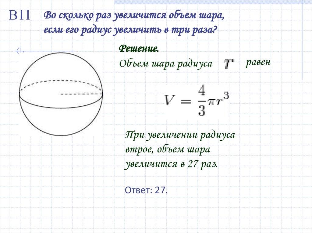 В11 Во сколько раз увеличится объем шара,если его радиус увеличить в три раза?
