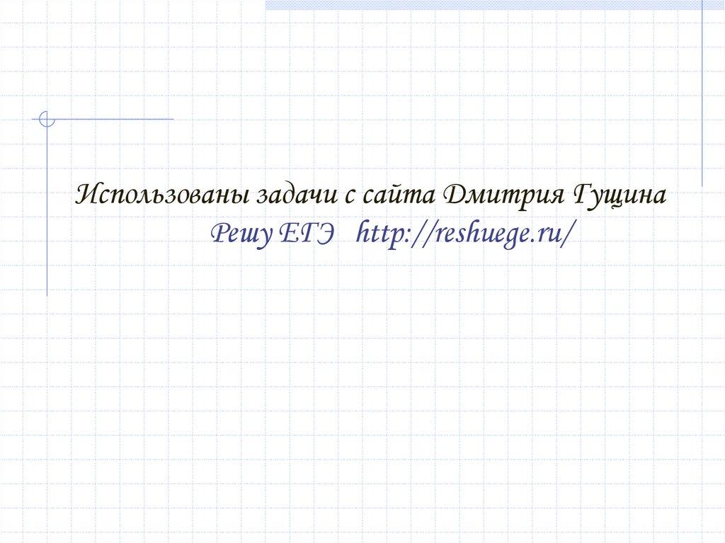 Использованы задачи с сайта Дмитрия ГущинаРешу ЕГЭ http://reshuege.ru/