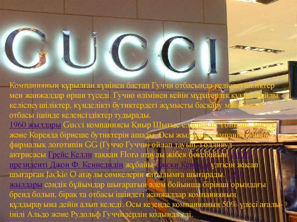 Gucci –әйелдерге және ерлерге арналған иіссу және киімдер жасаумен айналысады