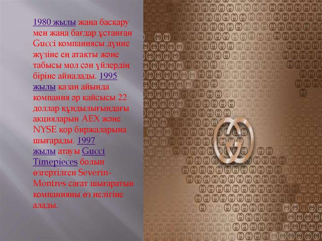 құлдырауына дейін алып келеді. Осы кезеңде компанияның 50% үлесі ағалыінілі Альдо және Рудольф Гуччилердің қолында еді.