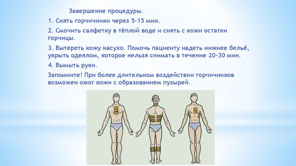 Завершение процедуры.1. Снять горчичники через 5-15 мин.