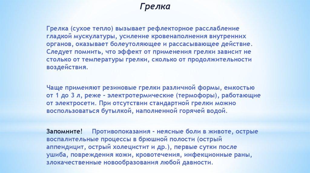 ПРИМЕНЕНИЕ ТЕПЛА:1. Повышает температуру тканей