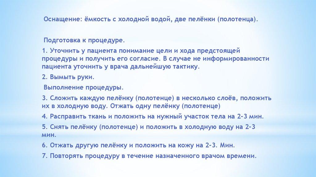 7. Укрыть пациента клеенкой, затем одеялом.