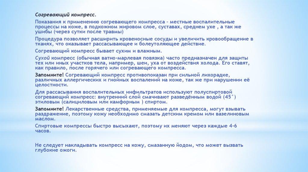 Применение горчичников,льда, грелки, компрессов