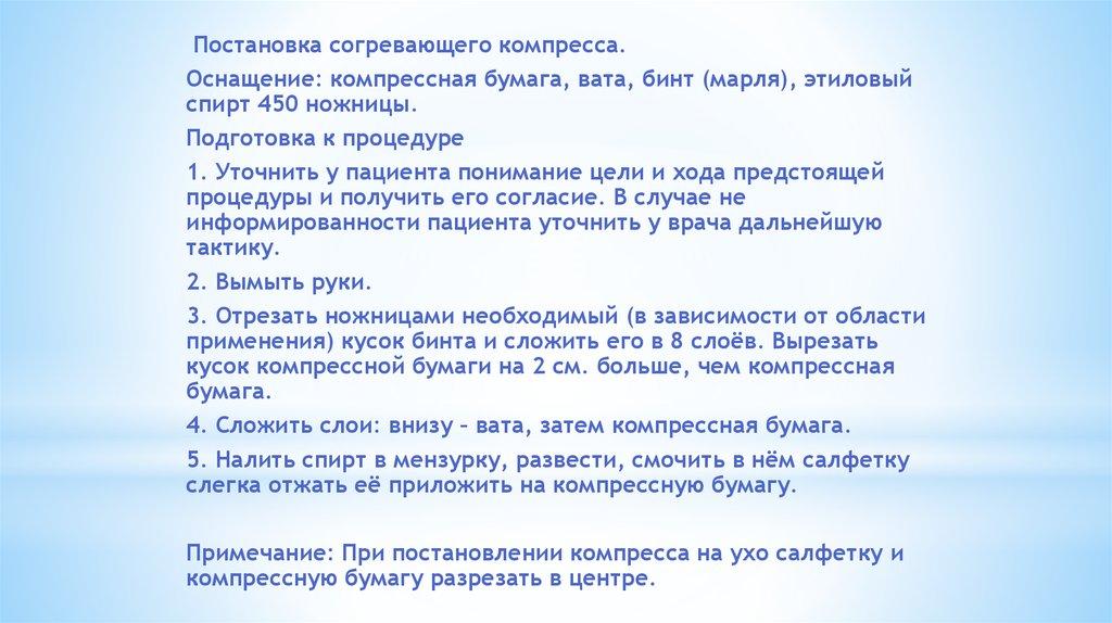 1. Уточнить у пациента понимание цели и хода предстоящей процедуры