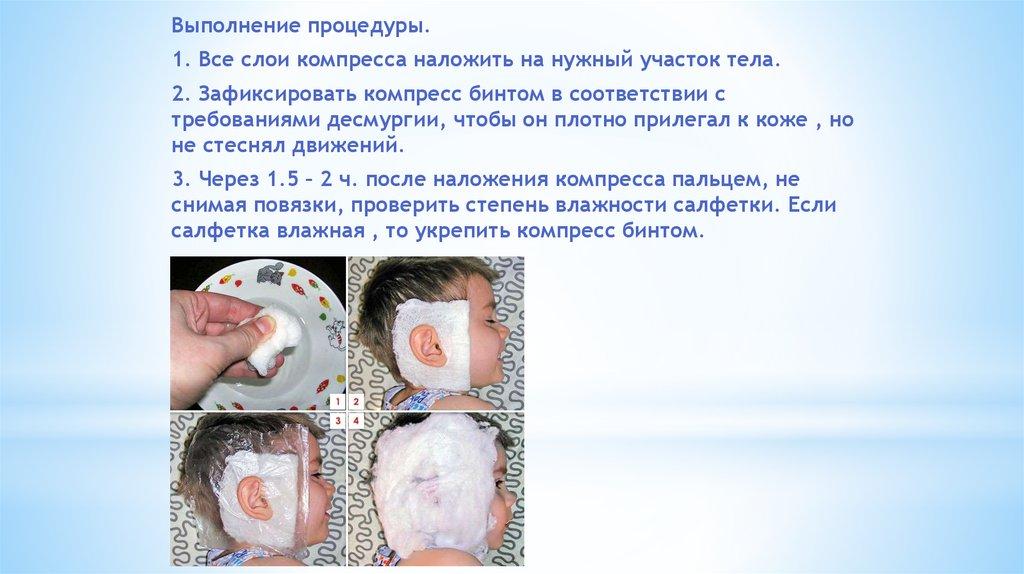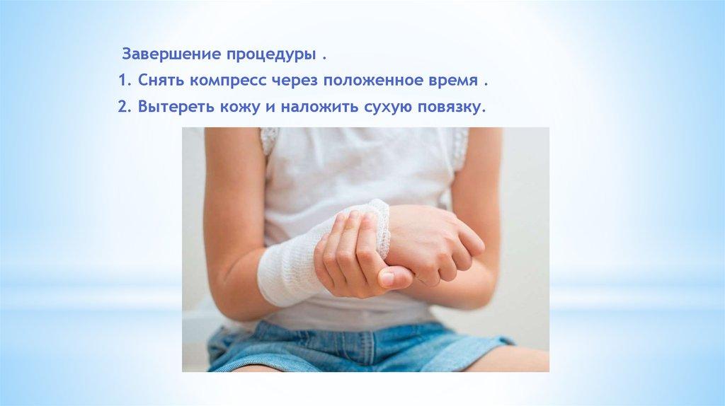 стечь. Плотно приложить к коже стороной покрытой