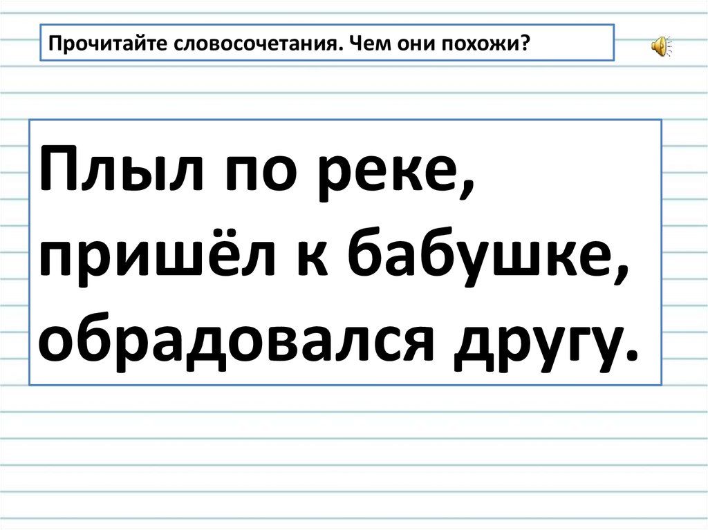 Прочитайте словосочетания. Чем они похожи?Плыл по реке,